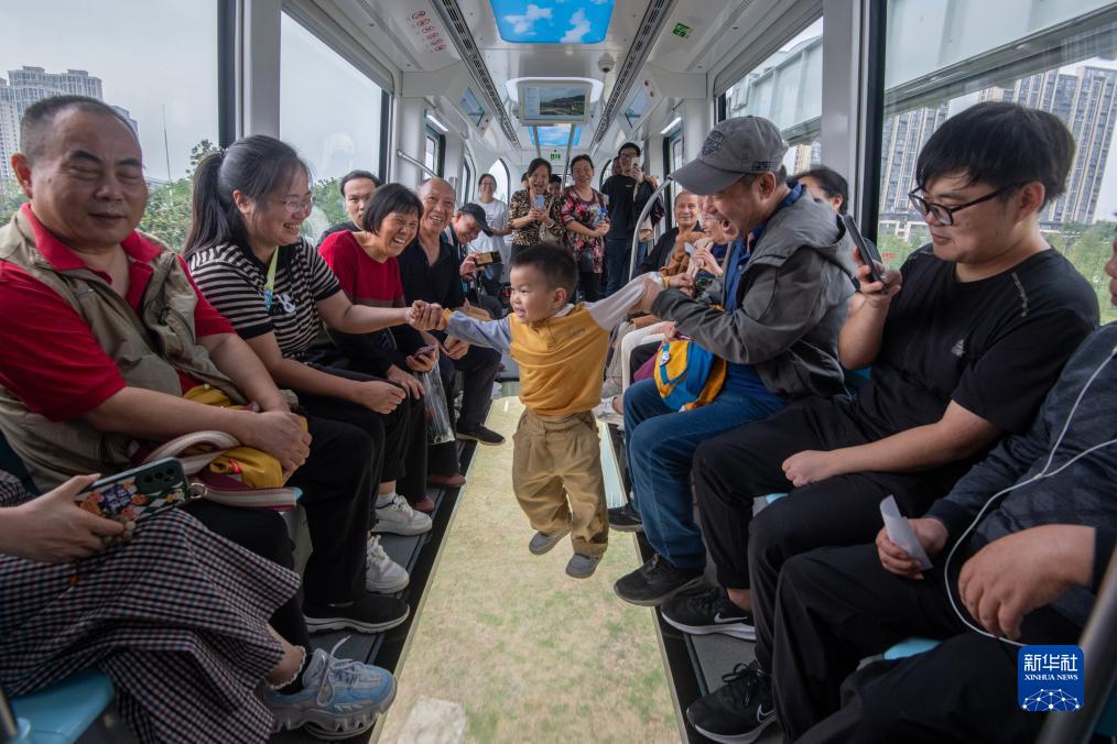 9月26日,乘客體驗(yàn)空軌列車。新華社發(fā)(杜子璇 攝)