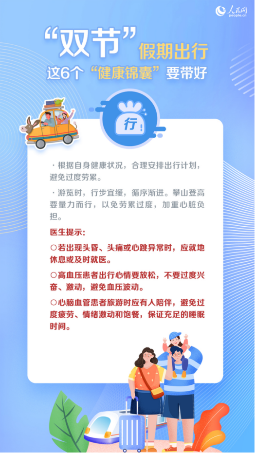 中秋、國慶假期臨近,你是不是即將開啟出行旅游、探親訪友模式?出行雖好,但關(guān)注健康必不可少。人民網(wǎng)記者采訪了天津醫(yī)科大學(xué)第二醫(yī)院副院長(zhǎng)李新教授,為你帶來6個(gè)出行“健康錦囊”。