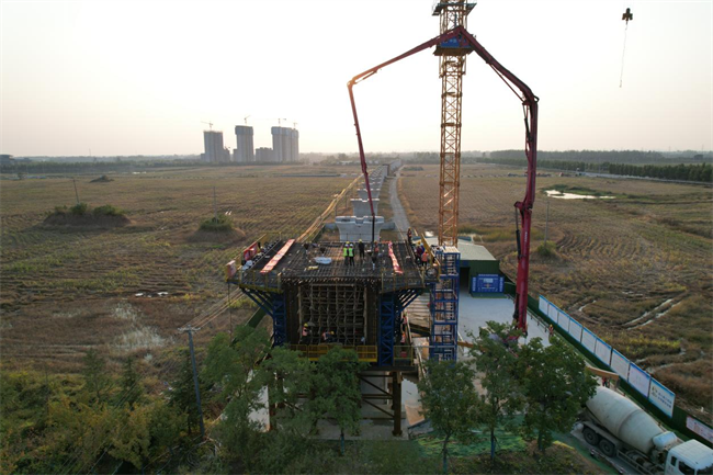 10月16日,在滁州市南譙區(qū)跨京滬高鐵立交特大橋施工現(xiàn)場(chǎng),隨著最后一車混凝土完成灌注,中鐵一局新建上海至南京至合肥高鐵滬寧合高鐵安徽段站前一標(biāo)跨京滬高鐵立交特大橋(48+80+48m)全線首個(gè)連續(xù)梁0#塊混凝土澆筑完畢。
