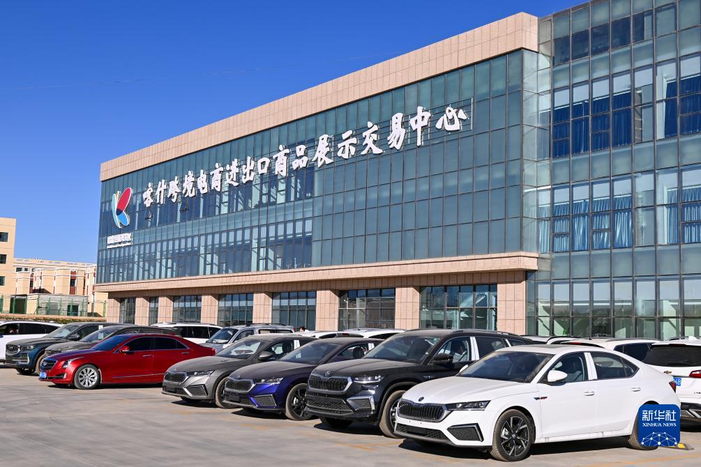 這是11月4日拍攝的新疆喀什跨境電商進(jìn)出口商品展示交易中心。