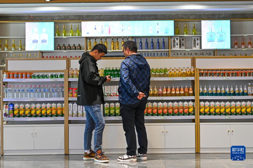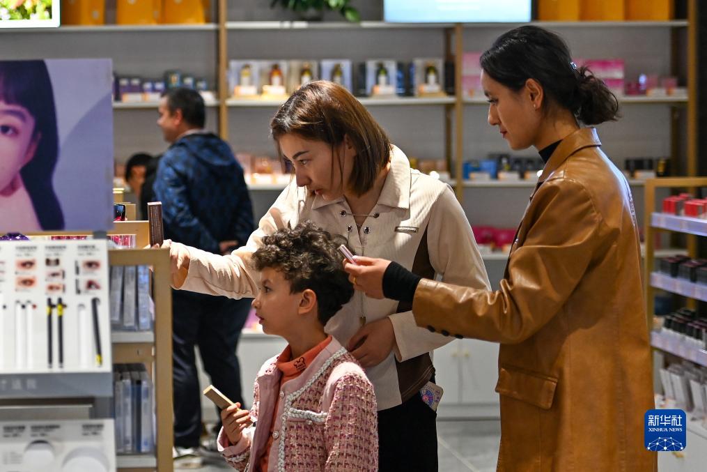 顧客在新疆喀什跨境電商進(jìn)出口商品展示交易中心挑選商品(11月4日攝)。