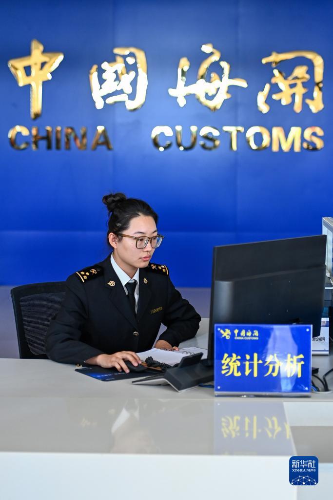 喀什海關(guān)關(guān)員在新疆喀什海關(guān)一站式業(yè)務(wù)大廳辦理業(yè)務(wù)(11月4日攝)。