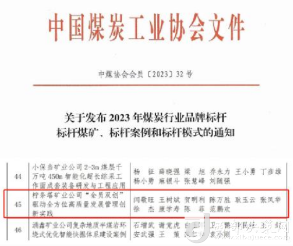 西部決策網(wǎng)訊 11月9日,中國(guó)煤炭工業(yè)協(xié)錨點(diǎn)會(huì)發(fā)布2023年煤炭行業(yè)品牌標(biāo)桿、標(biāo)桿煤礦、標(biāo)桿案例和標(biāo)桿模式,陜煤集團(tuán)神木檸條塔礦業(yè)有限公司《“全員雙創(chuàng)”驅(qū)動(dòng)全方位高質(zhì)量發(fā)展管理創(chuàng)新實(shí)踐》獲評(píng)2023年煤炭行業(yè)標(biāo)桿案例。