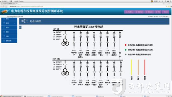 西部決策網(wǎng)訊 近日,公司BHDJ-2000電力電纜在線監(jiān)測及故障預(yù)警測距系統(tǒng)(以下簡稱:系統(tǒng))安裝完成并投入使用,實(shí)現(xiàn)了電纜故障預(yù)警;同時,利用行波測距技術(shù)、行波選線技術(shù)進(jìn)行電纜故障定位及選線,實(shí)現(xiàn)電力電纜的在線監(jiān)測。