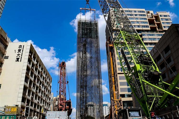 作為最能說(shuō)明項(xiàng)目部可以在“瓷器店里打老鼠”的施工,就是維也納酒店門(mén)前下放地下連續(xù)墻鋼筋籠。大家知道,車(chē)站的地連墻是保證地鐵車(chē)站安全的基礎(chǔ)和關(guān)鍵。如前所述,深圳地鐵11號(hào)線(xiàn)中大八院站是在窄小空間里“舞刀弄棒”,而南翼的維也納酒店門(mén)廳檐角在空間侵入地連墻,導(dǎo)致有4幅地連墻無(wú)法正常施工。項(xiàng)目部以?shī)溟W為首的管理團(tuán)隊(duì),組織技術(shù)骨干,反復(fù)研討、比選方案,確定采用“低凈空成槽設(shè)備成槽,鋼筋籠分片槽內(nèi)平移施工技術(shù)”方案。在鋼筋籠入槽時(shí),履帶吊“上提、前進(jìn)、轉(zhuǎn)臂、下放”等平穩(wěn)操作,將每片長(zhǎng)約35米、重約30噸鋼筋籠下放到槽內(nèi)。下放鋼筋籠時(shí),籠體距離門(mén)廳最小距離僅有3厘米,實(shí)現(xiàn)了對(duì)門(mén)廳“零碰撞、零剮蹭”。該施工技術(shù)為深圳地鐵施工首例。