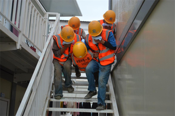 本次演練模擬施工現(xiàn)場電焊作業(yè)不慎點(diǎn)燃易燃材料擠塑板引發(fā)起火,引燃旁邊管理人員宿舍,導(dǎo)致一名人員疏散轉(zhuǎn)移不及時被困。演練現(xiàn)場設(shè)置了現(xiàn)場搶險、醫(yī)療救護(hù)、技術(shù)保障、物資設(shè)備保障、安全警戒、后勤保障6個應(yīng)急小組。隨著總指揮一聲令下,演練人員立即組織人員緊急疏散,對被圍困的二樓作業(yè)人員進(jìn)行救援,同時組織人員進(jìn)行滅火,參演人員按照既定路線有序逃生,安全到達(dá)指定地點(diǎn)。同時邀請消防支隊(duì)講解常用的消防器材及滅火設(shè)施。