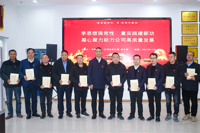 現(xiàn)場活動后,徐生輝在項目部會議室以《學(xué)思想強黨性 重實踐建新功 凝心聚力助推公司高質(zhì)量發(fā)展》為題,為項目黨員講授主題教育專題黨課,開展調(diào)研交流,并給黨員贈送學(xué)習(xí)書籍。