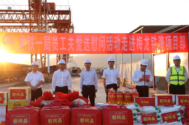 年終歲寒,元旦將至。為深入貫徹落實黨的二十大和中國工會十八大精神,把黨的關懷和公司工會的溫暖及時送到廣大職工群眾的心坎上。12月11日下午,中鐵一局“員工關愛送慰問”活動走進中鐵一局梅龍鐵路項目施工現(xiàn)場。中鐵一局黨委副書記、工會主席王新年,一公司總經理韓勝,副總經理、工會主席應曉峰等共同為項目一線參建職工送去暖心關愛。