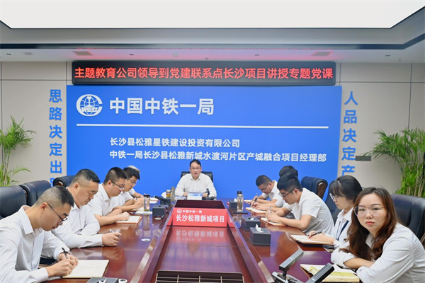 近日,中鐵一局一公司副總經(jīng)理裴賀元到長沙縣產城融合項目部調研,并為全體黨員干部講授主題教育專題黨課。