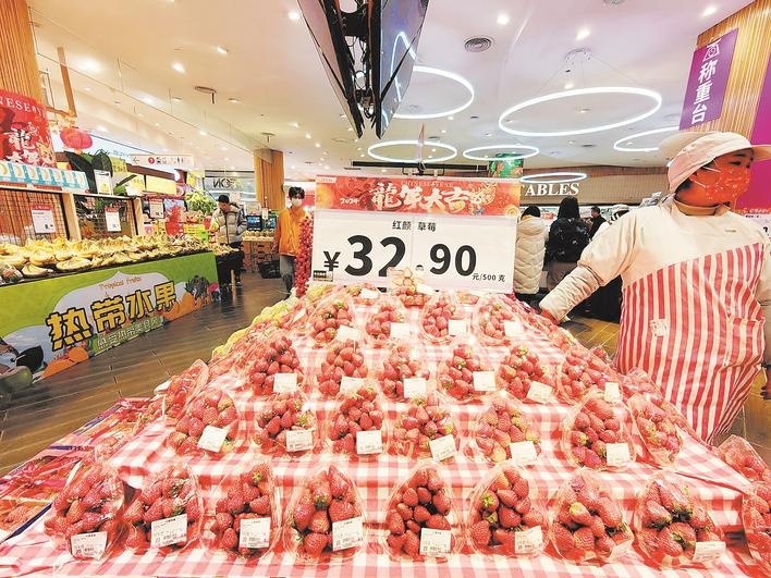 超市里的車?yán)遄雍图t顏草莓 攝影:楚天都市報(bào)極目新聞?dòng)浾卟芾?/div>