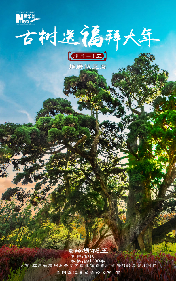 今年春節(jié),新華網(wǎng)聯(lián)合全國(guó)綠化委員會(huì)辦公室,策劃推出“古樹送福拜大年”系列海報(bào)12張,選取寓意喜樂(lè)吉祥、文化底蘊(yùn)深厚、景觀自然絕美的古樹名木,結(jié)合中國(guó)春節(jié)習(xí)俗,給廣大網(wǎng)友拜年啦!