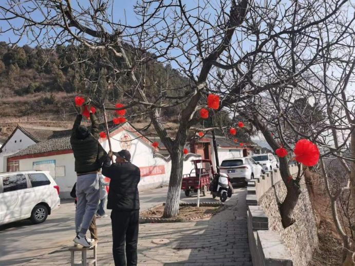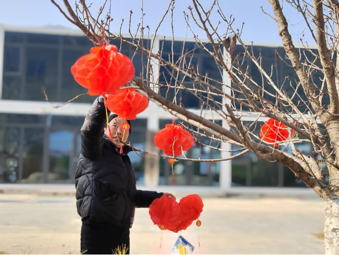 過新年掛燈籠是中國傳統(tǒng)習(xí)俗,象征著團團圓圓、紅紅火火。雖然當(dāng)下正值嚴(yán)寒時節(jié),但干部群眾一同掛燈籠的熱情卻很高漲,你扶梯子、我掛燈籠的熱鬧場景隨處可見。大家在相互密切配合下,一個個帶著新年祝福的紅燈籠掛滿了大街小巷,為全鄉(xiāng)村容村貌增色不少。“大紅燈籠掛起來,一下子就有年味啦,看起來真喜慶!”過往的村民高興地說到。