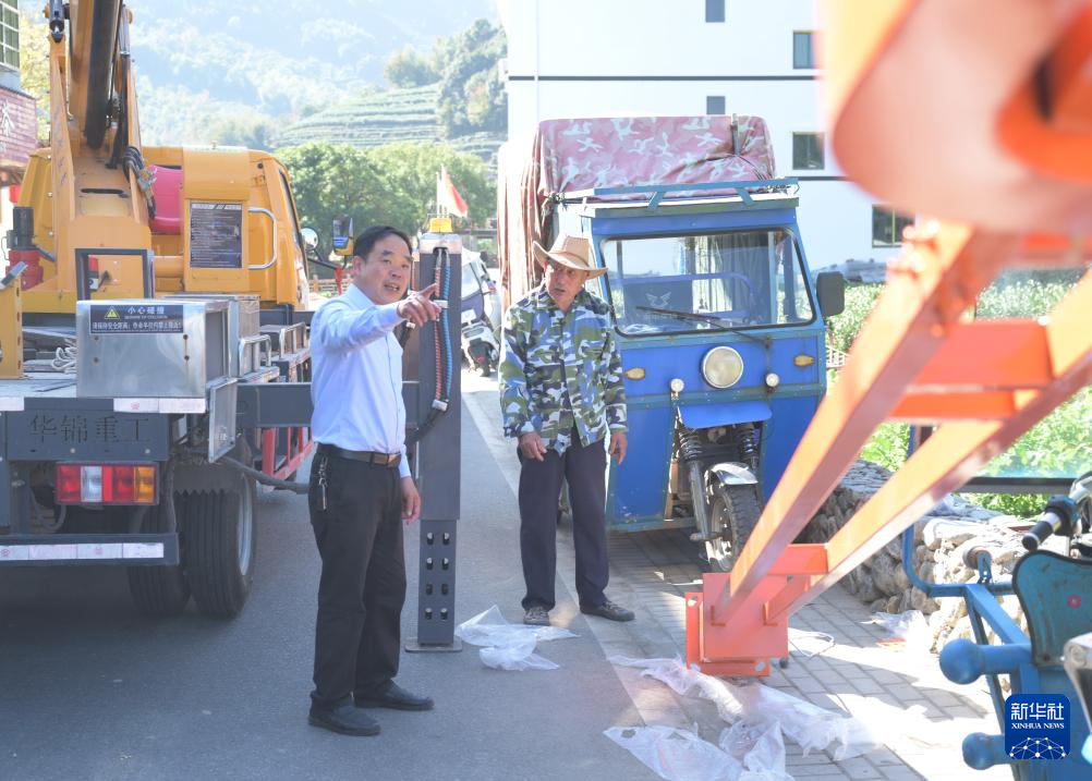 福鼎市赤溪村黨總支書記吳貽國(guó)(左)指導(dǎo)路燈安裝工作(2023年12月8日攝)。新華社記者 林善傳 攝