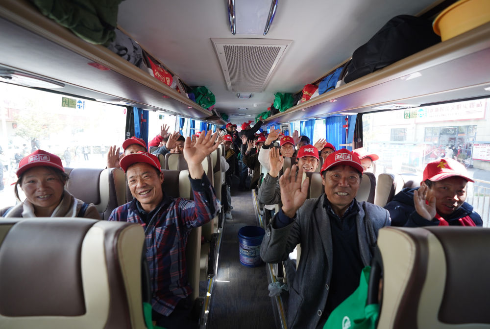 2月21日,在云南省昭通市的務(wù)工人員免費(fèi)乘坐返崗直通大巴車前往福建、廣東、江蘇等地返崗就業(yè)。新華社發(fā)(梁志強(qiáng)攝)