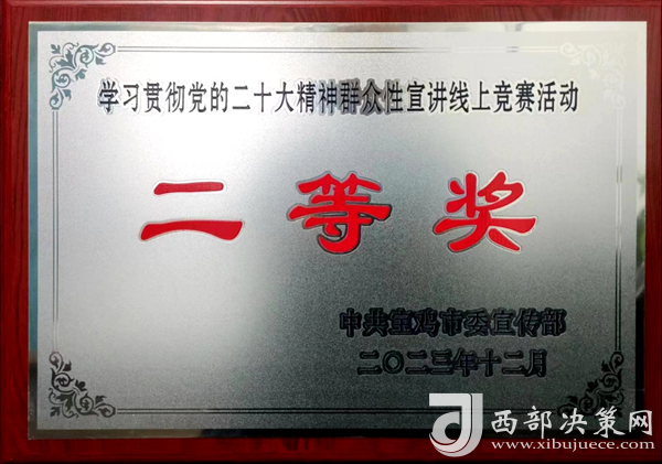 西部決策網(wǎng)訊 2月29日上午,寶雞市宣傳部長(zhǎng)會(huì)議召開(kāi)。會(huì)上通報(bào)表彰了2023年度縣(區(qū))宣傳思想文化工作考評(píng)結(jié)果,中共寶雞市鳳翔區(qū)委宣傳部榮獲2023年度宣傳思想文化工作創(chuàng)新獎(jiǎng)、學(xué)習(xí)貫徹黨的二十大精神群眾性宣講線上競(jìng)賽活動(dòng)二等獎(jiǎng)!
