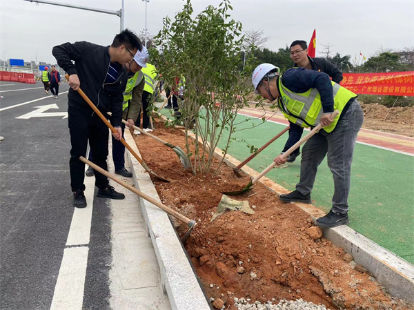 “在工地上開展植樹活動(dòng),綠化周邊環(huán)境,提高周邊居民生活質(zhì)量,建設(shè)佛山有軌電車綠色示范工程,給南海區(qū)里水人民提供交上一份滿意答卷”該項(xiàng)目黨支部副書記吳俊榮說道。