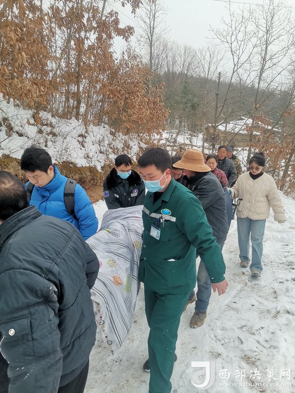急救醫(yī)護(hù)人員冒著風(fēng)雪轉(zhuǎn)運(yùn)患者