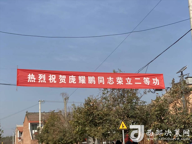 在喜慶的鑼鼓聲中,在現(xiàn)場(chǎng)父老鄉(xiāng)親的見證下,報(bào)喜團(tuán)成員抬著熠熠生輝的“二等功臣之家”的牌匾,懸掛起“熱烈祝賀龐耀鵬同志榮立二等功”的橫幅,來(lái)到龐耀鵬家門口,為龐耀鵬母親、岳父、岳母佩戴綬帶,頒發(fā)喜報(bào),送上牌匾和獎(jiǎng)勵(lì)金。座談交流中,報(bào)喜團(tuán)詳細(xì)了解了龐耀鵬家屬的身體和生活狀況,感謝他們?yōu)樽鎳?guó)培養(yǎng)了優(yōu)秀的軍事人才,鼓勵(lì)他們一如既往支持龐耀鵬安心部隊(duì)服役,建功軍營(yíng),爭(zhēng)取再立新功,為家鄉(xiāng)和國(guó)防事業(yè)增光添彩。