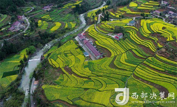 云巔巴山秀,棧道花海美。三月下旬,位于秦巴腹地的漢中市寧強(qiáng)縣巴山鎮(zhèn)石羊棧的梯田油菜花進(jìn)入盛花期。放眼望去,金色的油菜花田層層疊疊,與連綿的青山、清澈的溪水、蜿蜒的公路、漂亮的民居等交相輝映,構(gòu)成一幅醉人的鄉(xiāng)村春日畫卷。(供稿:吳天文 劉炳林 鄭小兵)